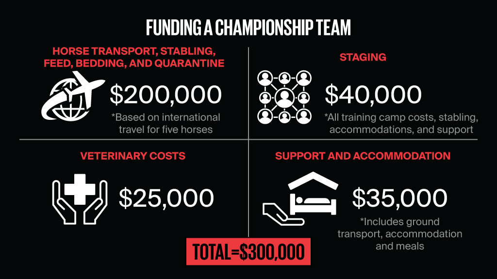 The need is immediate: it costs hundreds of thousands of dollars to send our teams each year to major games. In 2026 it will be the World Championships in Aachen, 2027 the Pan American Games in Lima, Peru and in 2028 it’s the pinnacle – the Olympic Games. We need your support to make it happen.