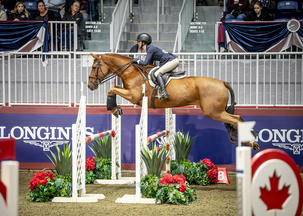 Minayla Alaux, représentante de la région de l’Atlantique et originaire de Sainte-Adèle (Québec) a remporté la finale de la médaille EEC 2025. L’épreuve était présentée par Running Fox Equestrian products le jeudi 13 novembre au Royal Horse Show de Toronto (Ontario).