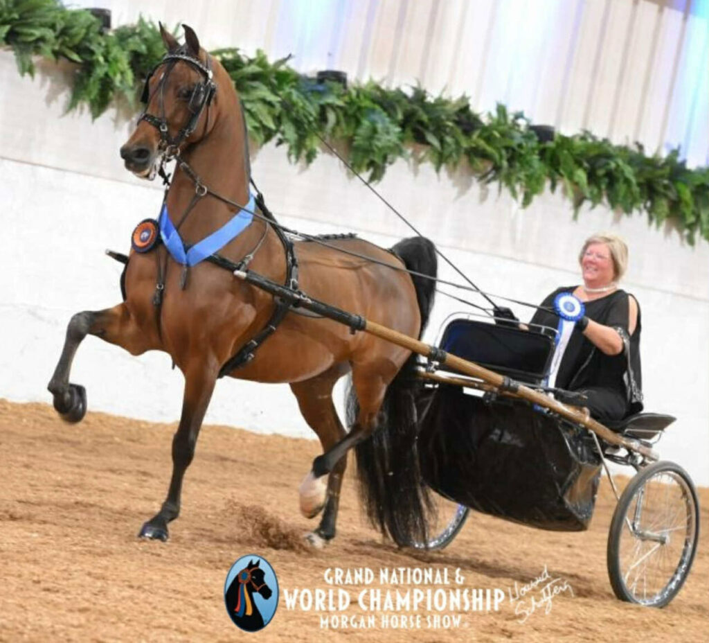 Every October Morgan Horse enthusiasts across North America and abroad descend upon Oklahoma City, OK for the Morgan Grand National and World Championship Horse Show. In 2025, like years past, we saw many Canadian bred Morgans attend and shown successfully to top honours! We have some wonderful Morgan breeders across Canada, and we would like to highlight some of them, whose Morgans have made it onto the big stage for Morgan breed performance.